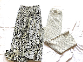 真っ黒だったトップス3枚とは打って変わって、柄物のボトムス2枚です。